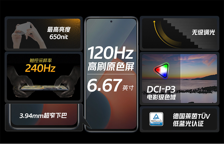 iQOO Z5采用6.67英寸120Hz高刷原色屏,屏幕亮度高达480nits,峰值亮度更是可达650nits,同时还支持96% NTSC色域、DCI-P3广色域和HDR10,带来流畅顺滑的画面显示与绝佳的色彩表现。iQOO Z5的显示屏支持全局无级调光及全程DC调光,可平稳调节亮度并有效降低频闪,缓解用户眼疲劳。同时,iQOO Z5更是通过了德国莱茵TÜV 低蓝光认证,可有效降低蓝光,在保护用户眼睛方面更进一步。